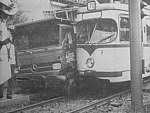 | 14.Oktober 1981 Der Tw 2315 der Rheinbahn verunglückte am 14.10.1981 auf der Düsseldorfer Strasse. Ein LKW (Mercedes-Benz Typ LP 813) hatte bei der Ausfahrt vom Gelände der Arbeiterwohlfahrt, die Vorfahrt der 712 missachtet. Es gab keine Verletzten. Hätte der LKW es geschafft die 712, deren vorderes Drehgestell aus den Schienen gesprungen war ,weiter aus dem Gleis zu drängen, wäre deren Fahrt im Betonmast der Oberleitung geendet. |