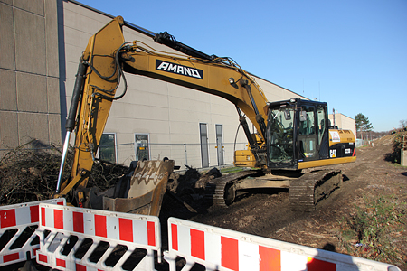 29.November 2017 - Die feste Fahrbahn ist verfüllt. Bäume wurden auf dem Damm gepflanzt.