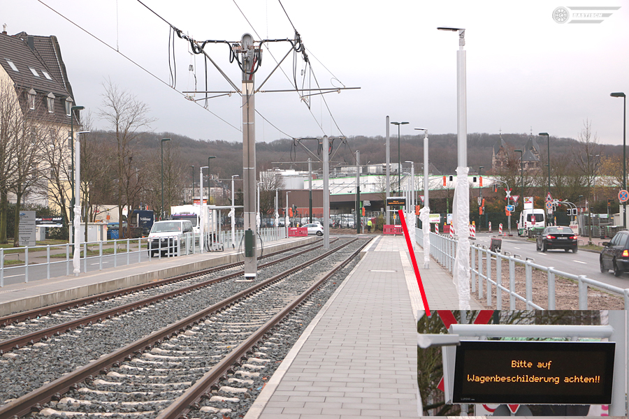 Endhaltestelle Wendeschleife Am Hülserhof. Es ensteht ein Bahnsteig und ein Bedarfsbahnsteig