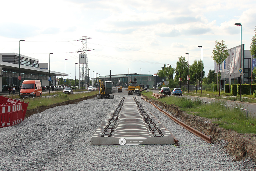 13.Juni 2017 - Zweigleisig - Übergang auf Rillenschienen - hier die Buswendespur am ISS-Dome